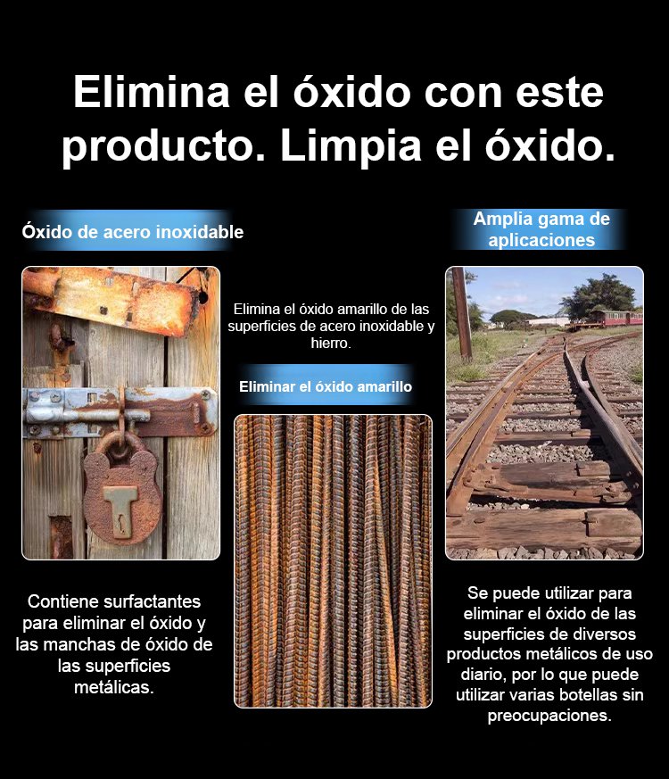 Adiós al raspado y lijado, solo rociar, esperar 3 segundos, el óxido se disuelve, Una botella trata 200 metros cuadrados!